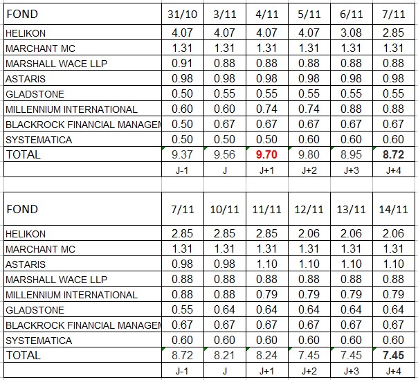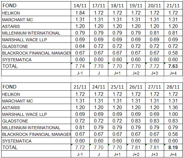 Contrairement à ce qu’on imaginait, peu de fonds ont VADé à des niveaux de 4€, ainsi SYSTEMATICA est entrée en VAD à 3€ et GLADSTONE est entré en VAD à 2.60€.