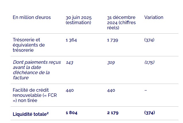 Variation nette de trésorerie[1] estimée à -38 millions d’euros au T3 2025