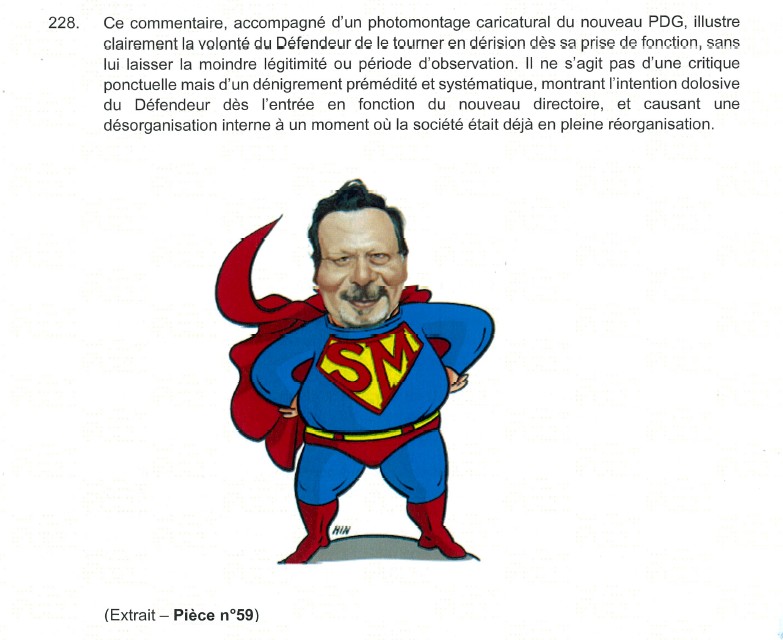 S’ils me font fermer le blog au moins que je le place une dernière fois 😀 😀 Parce que dans les 54 pages de l’assignation, il y a marqué que Philou il est pas content que je le caricuture. Il est sûrement allé défiler avec les millions de manifestants à Paris après Charlie Hebdo pour faire l’apologie d’une illustration montrant une étoile dans le cul du prophète mahomet, mais une petite caricature d’un PDG inconnu, ça passe pas. Ne voyez pas de médisance dans mes propos car si vous demandez à dit Français dans la rue « qui est Philippe Salle, y’aura zéro réponse ». Si on augmente le nombre à 100 personnes, peut-être qu’on en trouvera allez un, avec un peu de chance. Sur 1000 personnes, 2 ou 3 quand même, je pense…