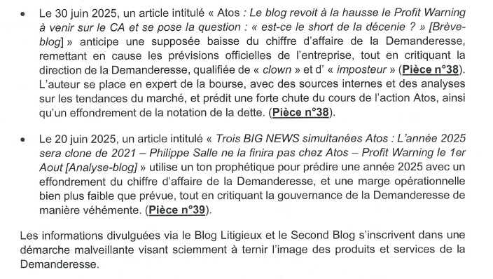 Je rappelle que le blog a été attaqué en justice, le problème est qu’ils ne demandent pas le retrait d’articles, mais la fermeture pure et simple du blog via une assignation fleuve comportant au total avec les annexes 2034 pièces et une audience sous un délai de 6 semaines, afin de nous asphyxier de couts d’avocats. Nous sollicitons à cette occasion la solidarité de nos lecteurs car les couts d’avocats vont se monter à plus de 20 000€, sachant que nous n’avons pas fait de campagne en 2025 pour la participation aux frais techniques du blog qui ont été étoffés cette année par le harcèlement fait par Atos à nos hébergeurs et la nécessité de changer sur des hébergements bien plus couteux.